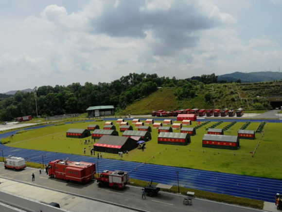 演練模擬廣州帽峰山發(fā)生重大地質(zhì)性災(zāi)害,同時深圳平安大廈、東莞海域、江門彩虹嶺隧道也發(fā)生重大災(zāi)害,接到災(zāi)情后,廣東省應(yīng)急管理廳和消防救援總隊迅速組織搭建國家級現(xiàn)場指揮部。