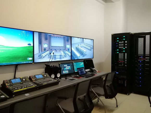 多功能廳音響設備全部選用了美國ATLAS產品,8支AL123A-B有源3分頻中高音線陣,2支AL218A有源雙18寸超低音,形成一個4分頻線陣系統。補聲及臺唇部分由10支8寸同軸SM8CXT組成,舞臺返送使用了4支12寸同軸SM12CXT。其同軸喇叭的還音特性極度符合返送這種近聲場聽音環境。02