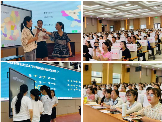 緊接著希沃杏壇講師樊巧慧從一線教師的角度,結合自己的信息化應用能力提升的經驗,為在場老師講解了希沃軟件在中小學各學科課堂中的使用。參訓老師們領略了希沃白板在備課、授課等情景下的應用:從形狀、文字講到視、音頻導入;從視頻打點功能講到背景制作、講到蒙層功能。每到互動環節,老師爭相上臺操作互動,都想體驗下希沃白板預設的各項課堂工具,現場氛圍輕松而熱烈,參訓老師就像學生一樣融入了信息化的高校生動的課堂里。