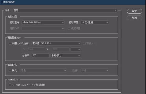 2、一般來說RAW文件用PS打開,在默認設置下的ACR解碼后的色彩空間一般是AdobeRGB,如果想用sRGB那么直接調PS設置是沒有用的,應該調整ACR的輸出設置。