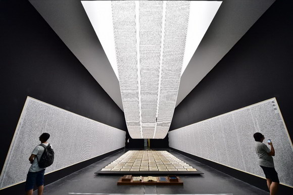 同樣在UCCA尤倫斯藝術中心舉辦的,藝術家徐冰四十年創作歷程大型回顧展“徐冰:思想與方法”,為了呈現一幅動態水墨長卷,3臺明基激光投影機拼接融合無縫鋪開,點亮一整面墻,藝術家所要傳達的《漢字的性格》躍然紙上。