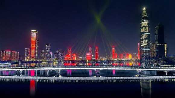深圳灣項目以節慶為契機,打造了“最美深圳灣”和“魅力南山”燈光秀,用動態漸進和虛擬再現的藝術手法,生動展現深圳南山區經濟、人文、生態、科技等領域的高速發展和豐碩成果。