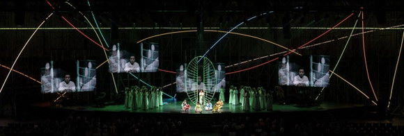 作為為期三天長達(dá)15小時(shí)表演的一部分,荷蘭國家歌劇院演繹了德國作曲家卡爾海因茨·施托克豪森的著名作品aus LICHT的精彩部分。作為世界五大歌劇院之一,荷蘭國家歌劇院選擇采用科視Christie® Terra和科視Christie 潘多拉魔盒相結(jié)合的方式,前者用于AV影音傳輸及處理,后者用于管理與控制整場(chǎng)表演所使用的四個(gè) LED 視頻墻、攝像機(jī)和投影機(jī)所呈現(xiàn)的內(nèi)容。