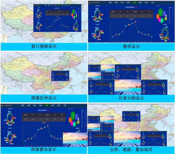 將計算機、網絡通信、視頻拼接顯示、信息發布、周邊環境控制等等實現同步聯動。通過平臺可以把各個業務子系統對接起來,實現同步顯示,便于操作的可視化顯控平臺。
