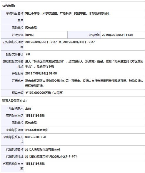 > 育紅小學等三所學校監控、廣播系統、網絡布置、計算機采購項目招標公告