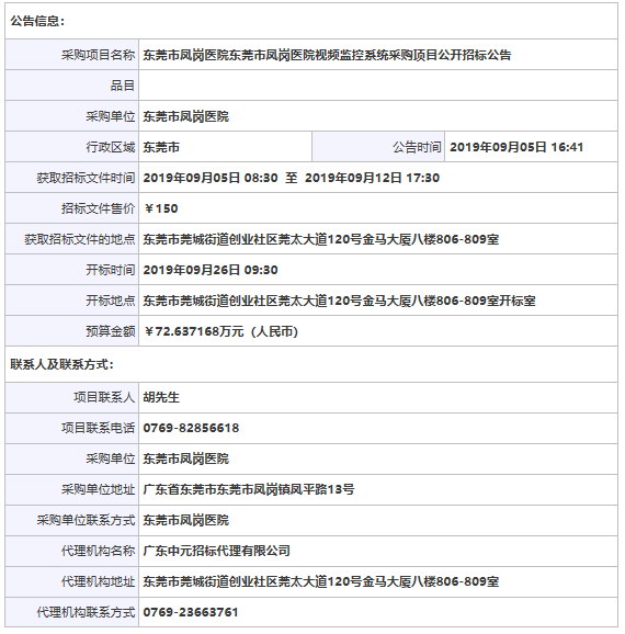 東莞市鳳崗醫(yī)院東莞市鳳崗醫(yī)院視頻監(jiān)控系統(tǒng)采購(gòu)項(xiàng)目公開(kāi)招標(biāo)公告