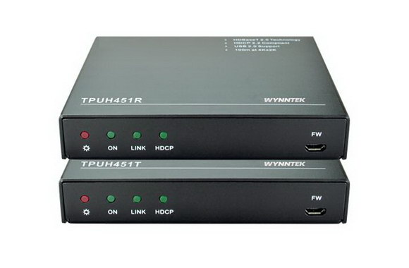WK-TPUH451是一套可實現高清信號遠距離傳輸的HDBaseT2.0。傳輸器,由發射器(TPUH451T)和接收器(TPUH451R)組成。支持4Kx2K@60Hz超高清分辨率,且4K信號的傳輸;距離可達100米,支持HDMI2.0標準,兼容HDCP2.2標準。此外,還支持USB2.0傳輸功能,在接收器端,可通過鼠標、鍵盤等操控發射器端的設備。同時,設備還具有雙向RS232通訊和單向PoC功能,簡化布線,節省空間,極大地提高系統的靈活性。