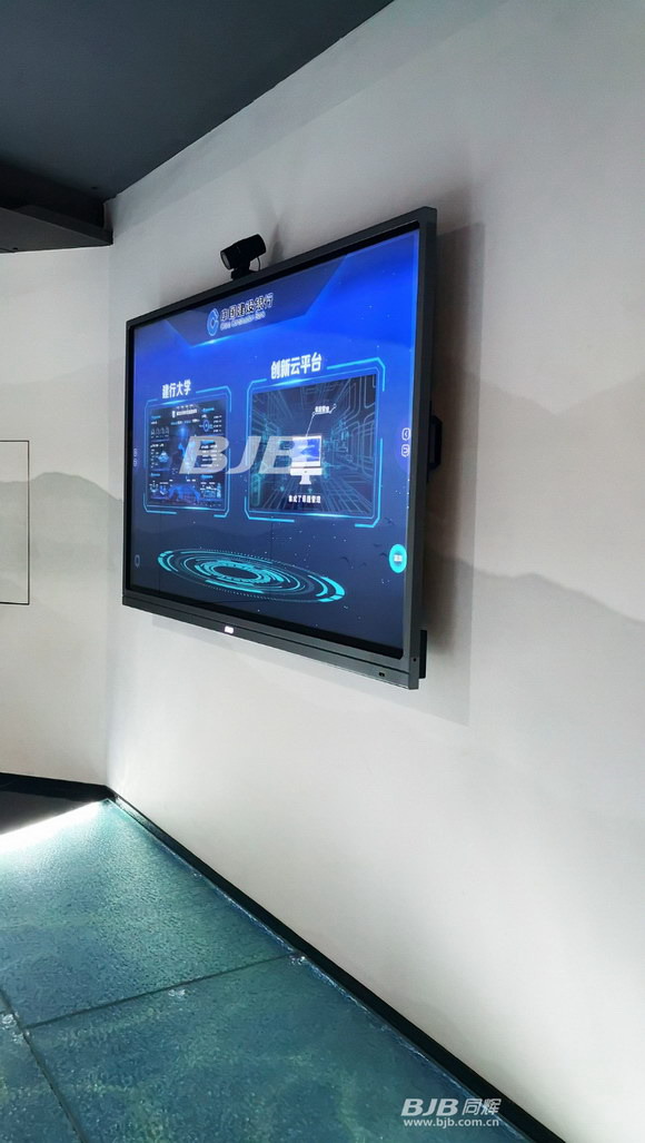 在另一處的互動(dòng)體驗(yàn)區(qū),則使用了同輝信息65寸Q-Meeting,用于實(shí)時(shí)展示某分行與各支行客戶流量及相關(guān)信息,增加各銀行網(wǎng)點(diǎn)之間的互動(dòng)與聯(lián)系,為分流業(yè)務(wù)辦理提供參考依據(jù)。