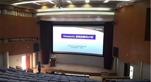 此次沈陽建筑大學報告廳在安恒集團的幫助下順利完成改造,利用單臺投影機正投的方式,打造長7.6米,高4.25米的巨大顯示畫面。高清分辨率高亮顯示,讓原本灰暗的屏幕立刻明亮了起來。