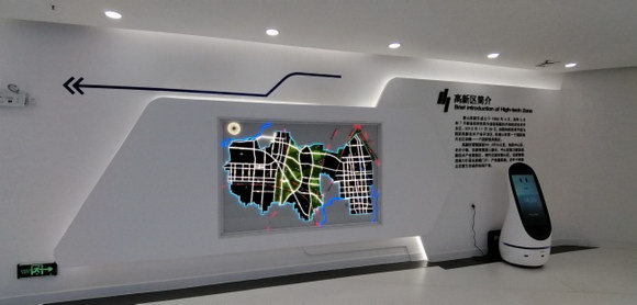 來到高新區(qū)展示中心,您會在機(jī)器人講解員“高小新”的引領(lǐng)下,穿過“時光走廊”詳細(xì)了解高新區(qū)發(fā)展建設(shè)情況。