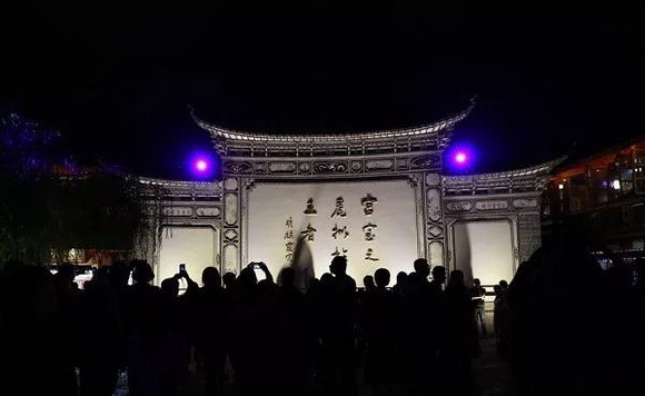 納西東巴文是麗江傳統文化的重點之一,被稱為“世界上唯一活著的古文字”,是居于西藏東部及云南省北部的少數民族納西族所使用的文字,其形態甚至比甲骨文的形態還要原始。Vivitek(麗訊) DU9800Z工程投影機具備的10萬:1對比度和WUXGA級別分辨率,讓忠義牌坊上緩緩出現燙金的納西東巴文顯得格外清晰,讓觀眾們可以更加順暢地觸及東巴文化的精髓。
