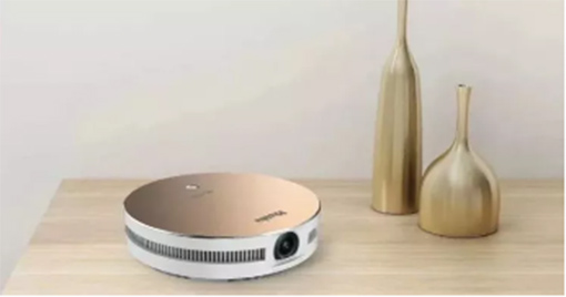 華錄微投紐扣N1有太空銀、香檳金兩款機型,可搭配當下流行的北歐風、極簡風等時尚家居,科技感十足。它體積小巧,僅重1.5kg,只需一根電源線、一面墻就能實現便捷投影。