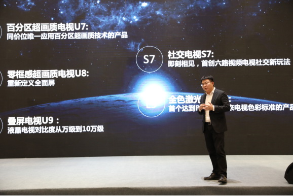 王偉用了“創(chuàng)造”這個詞來概括海信視像的2019,這一年,海信電視連續(xù)打造爆款,向市場推出了多款現(xiàn)象級產(chǎn)品:同價位唯一應(yīng)用百分區(qū)高畫質(zhì)技術(shù)的U7、重新定義全面屏的U8、首創(chuàng)六重防殘影技術(shù)的OLED電視A8,對比度從萬級到10萬級的疊屏電視U9、首創(chuàng)六路視頻電視新玩法的社交電視S7,以及首個達(dá)到BT2020未來電視色彩標(biāo)準(zhǔn)的全色激光電視L9。