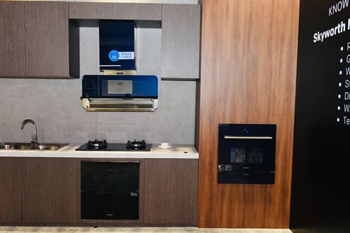 其中,獨立的廚電展區(qū)最引人注目,展區(qū)內(nèi),掛式抽油煙機和智能灶具,嵌入式的洗碗機和消毒柜,反滲透直飲機和廚下凈水器、電熱水器和燃氣熱水器,臺式洗碗機、茶吧機等一應俱全,完整展示了廚房應用場景。作為創(chuàng)維廚電2020年的重磅新品——創(chuàng)維掛式薄鏡屏物聯(lián)升級款也首次亮相,它既可以通過13英寸的智能大屏便捷地查閱菜譜,還可以通過內(nèi)置云端語音交互控制系統(tǒng)來播放音樂與視頻,真正實現(xiàn)智能廚房電器物聯(lián)交互。
