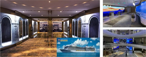 洲明為皇家加勒比海洋光譜號郵輪Spectrum of the Seas主餐廳提供的1.9mm軟模塊組,打造了令人驚嘆的氛圍。模組表面經過特殊涂層處理,可清洗,在海上潮濕環境下依舊具有高可靠性。