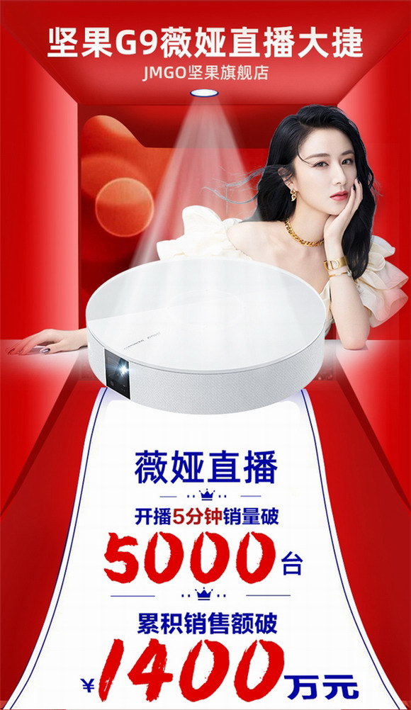 就在10月23號(上周五),深圳火樂科技旗下的堅果G9投影儀再次登陸薇婭直播間,開播僅僅五分鐘就熱賣5000臺,最終累計銷售額達到1400萬。這充分展現了國內帶貨一姐薇婭的驚人實力,當然也體現出了堅果G9的綜合實力。