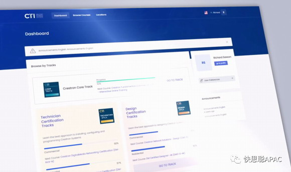 快思聰技術(shù)學(xué)院網(wǎng)站不僅有著嶄新界面,還有全新的 CTI 快思聰技術(shù)學(xué)院課程的深造規(guī)劃,并且新增多條吸引人的認(rèn)證規(guī)劃路線,適合銷(xiāo)售人員,設(shè)計(jì)工程師,現(xiàn)場(chǎng)技術(shù)人員,和現(xiàn)場(chǎng)工程師。當(dāng)然,依舊包括久負(fù)盛譽(yù)的快思聰編程課。