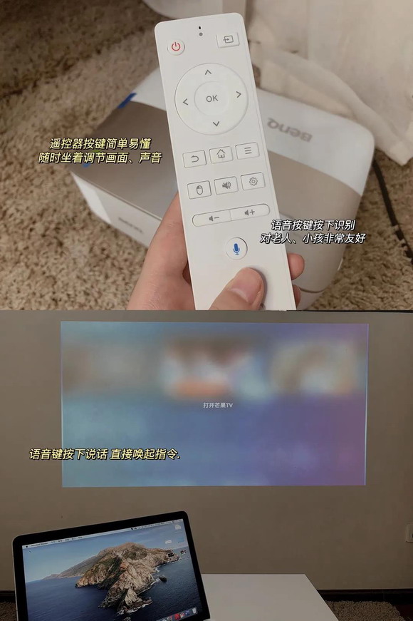 此外,明基i707智能家用投影儀支持手機、平板等多設備無線投屏,進一步擴展資源獲取渠道。還配備語音遙控器,想看的內容說出來就好,操作更方便。