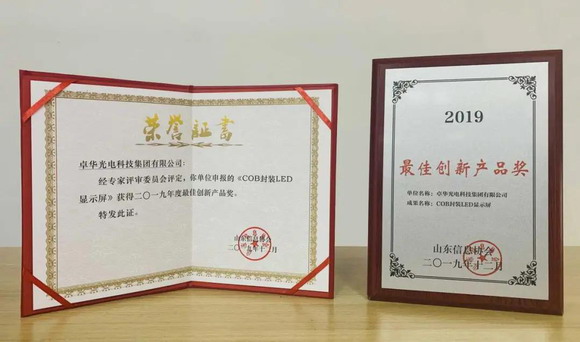 憑借過硬的技術實力和產品研發設計的不斷創新,Voury卓華COB封裝LED顯示屏獲得了2019年度最佳創新產品獎。