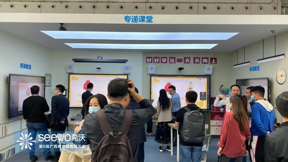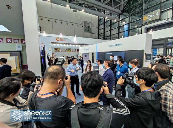 10月16日,第9屆廣西教育裝備展示會在南寧市國際會展中心盛大開幕。裝備展上,希沃攜第五代智慧黑板、第五代交互智能平板、希沃互動錄播等多款教學產品和解決方案驚艷亮相,全方位展示了新產品帶給教育教學的深度融合應用場景,希望通過教育科技的創新和專注,為用戶提供實用易用的教育信息化應用工具、教育信息化前沿理論研究成果、教育信息技術常態化應用培訓服務等。希沃展位現場吸引了眾多教師、采購人員等參展觀眾前來體驗和了解咨詢。