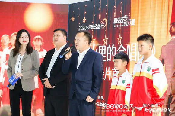 兒童清亮干凈的歌聲在展會現場響起,一個大山里的合唱故事開始娓娓道來,在設備缺乏、師資缺乏的情況下,大山里的孩子們如何才能圓他們的合唱夢,在希沃錄播設備的幫助下,城市與大山連結了起來,完成了屬于大山里的合唱表演。人們不自覺靠近、駐足、凝視。紀錄片終了,全場靜默片刻,突然爆發出掌聲。這是觀眾對希沃公益行的認可,也是希沃公益行想要傳達給所有人的力量!而后,片中團結小學的張校長、主演肖老師和小主演們也到達了現場,發表了內心感言,分享公益為學校帶來的改變。