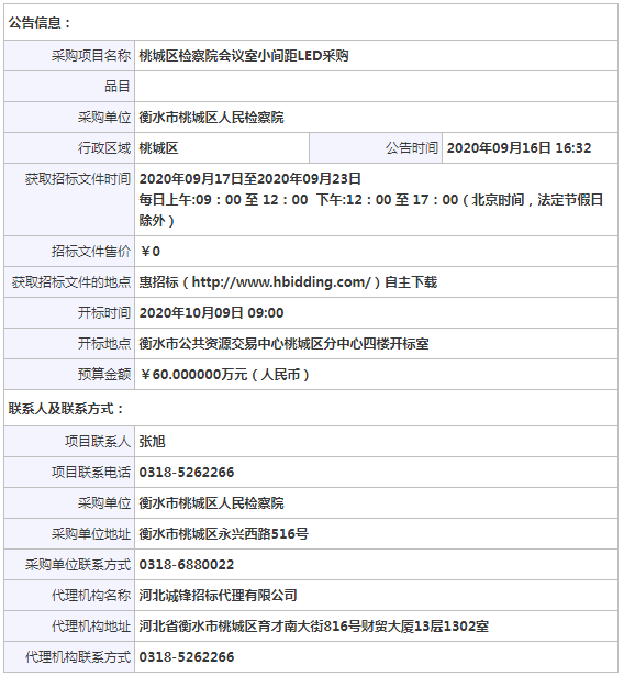 采購項目名稱: 桃城區檢察院會議室小間距LED采購