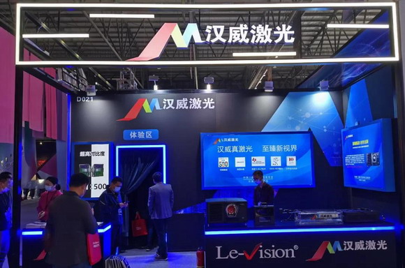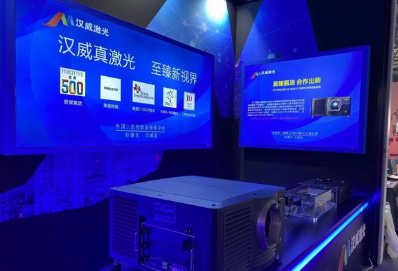 漢威激光作為中國RGB激光影院放映機的知名品牌也受邀參加了本次展會。在本次展會中展示了漢威激光與Christie聯合研發的6款創新一代無散斑RGB激光電影放映機產品。值得一提的是,2020年5月13日,這6款產品一次性全部通過了好萊塢美國DCI認證。至此,漢威激光成為了繼國內擁有3DLP激光投影機設計生產能力后又同時通過了好萊塢美國DCI認證的RGB激光影院放映機的中國品牌。