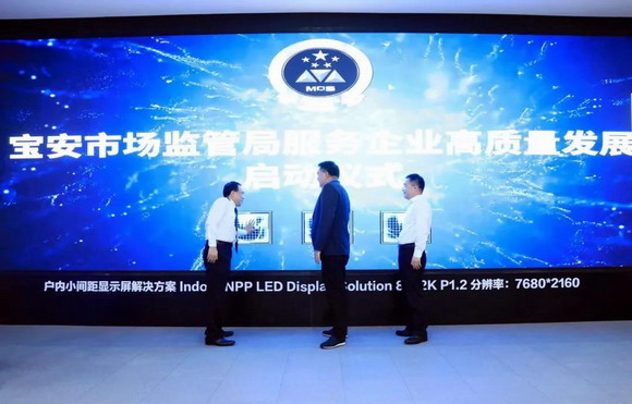 11月5日,寶安市場監(jiān)管局服務(wù)企業(yè)高質(zhì)量發(fā)展啟動儀式暨服務(wù)企業(yè)首次活動在洲明隆重舉行。深圳市市場監(jiān)督管理局局領(lǐng)導(dǎo)李平,寶安市場監(jiān)管局黨委書記、局長歐陽衛(wèi)國攜各科室主要負責(zé)人蒞臨洲明福永總部參會,并圍繞企業(yè)高質(zhì)量發(fā)展相關(guān)議題對洲明進行調(diào)研考察。洲明集團銷服體系副總裁袁道仁、公共關(guān)系事務(wù)部總監(jiān)肖華等公司管理層熱情接待了來訪領(lǐng)導(dǎo)一行。