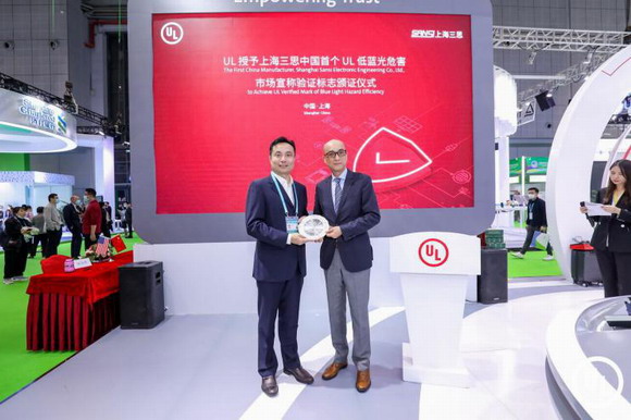 全球著名的安全性標準起草、制訂的第三方機構(gòu)——UL公司也亮相這一全球盛會,并在此期間(11月6日下午)向上海三思電子工程有限公司(以下簡稱上海三思)頒發(fā)了中國首個UL低藍光危害驗證標志證書。