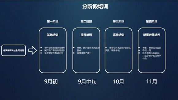 在會澤縣劉廳名師工作室的牽頭下,自9月開始,希沃、統信與工作室共同搭建交互智能平板及國產操作系統培訓體系。培訓走入文淵中學,大成中學,致遠中學,共分為四個階段,圍繞希沃交互智能平板、希沃白板、UOS操作系統的應用,幫助老師將現代信息技術有效運用于學校管理和教育教學,培育區域信息化教學標桿。