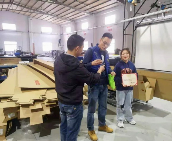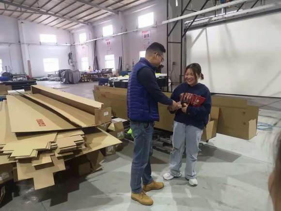 銷售部戴總監給謝童鞋頒發"百萬訂單成就獎”。