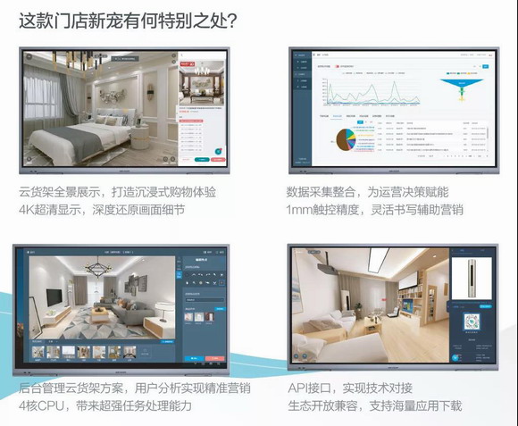 作為智慧門店?duì)I銷新利器,這款意義特殊的智慧云屏肩負(fù)著解決現(xiàn)有家居門店獲客難、轉(zhuǎn)化率低、演示場(chǎng)景單一等歷史難題的重要使命,從實(shí)際應(yīng)用場(chǎng)景出發(fā),結(jié)合?低曔^硬的產(chǎn)品研發(fā)實(shí)力與酷家樂出眾的軟件開發(fā)能力,將“全力以赴”改善和助力線下門店實(shí)現(xiàn)從宣傳引流到產(chǎn)品展示等全方位的轉(zhuǎn)型升級(jí)。