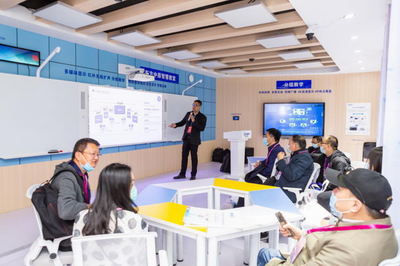 一間等比例還原的智慧教室吸引了現(xiàn)場(chǎng)眾多觀眾進(jìn)行體驗(yàn),東方中原智慧教室是通過(guò)與眾多教育信息化專家及大量一線教育工作者深入交流,結(jié)合自身在教育教學(xué)場(chǎng)景中對(duì)需求的精準(zhǔn)挖掘,從智慧教育教學(xué)、智慧環(huán)境控制、智慧運(yùn)維管理三個(gè)方面打造的新型標(biāo)桿性智慧教室。它具有多媒體顯示系統(tǒng)、紅外無(wú)線擴(kuò)聲系統(tǒng)、分組教學(xué)系統(tǒng)、物聯(lián)感知集控系統(tǒng)、信息發(fā)布系統(tǒng)及智慧運(yùn)維系統(tǒng)集一體的整套智慧教室解決方案,可實(shí)現(xiàn)高等教育“以學(xué)生為中心”的教學(xué)需求,有助于師生進(jìn)行深度交流互動(dòng)。