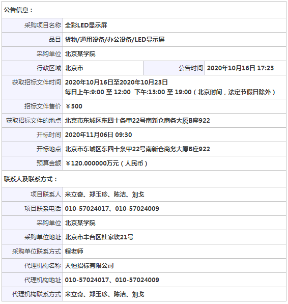 獲取招標文件時間: 2020年10月16日至2020年10月23日