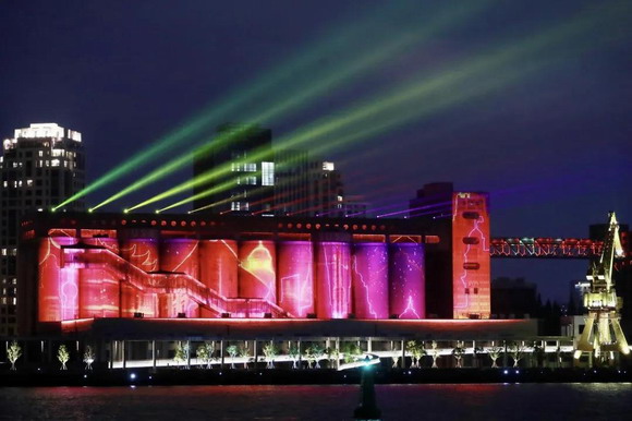 作為歷史車輪滾滾輾過所遺留的痕跡,昔日的糧倉已卸下了守護一方溫飽的重任,但烜赫一時的糧倉并未退出歷史的舞臺。如今的八萬噸筒倉已逐漸褪去工業社會氣息,成功轉型藝術展場,成為光影秀的載體。