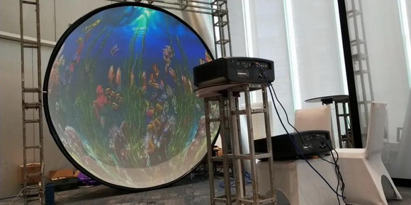 互動球幕系統(tǒng)是一款新型的球形屏幕投影演示設(shè)備,它打破了以往投影圖像只能是 平面規(guī)則圖形的局限。憑借其無縫光學(xué)樹脂球幕和高流明