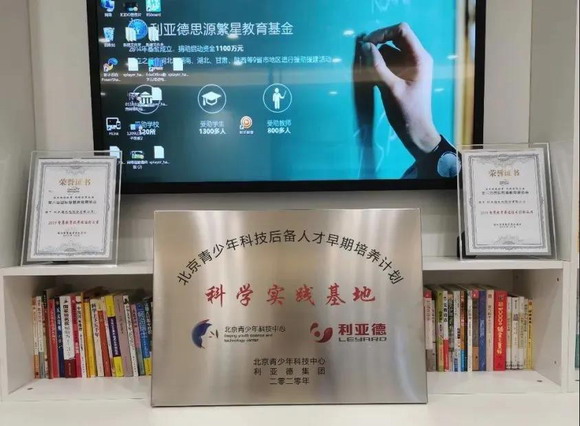 近日,北京青少年科技中心“科學實踐基地”授牌儀式在利亞德集團舉行。北京青少年科技中心副主任劉然向利亞德頒發了“科學實踐基地”牌匾。
