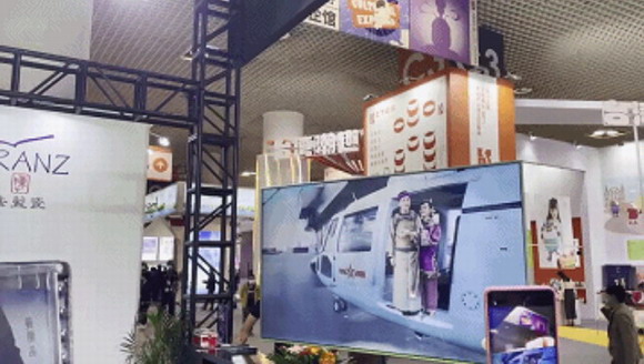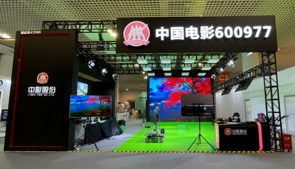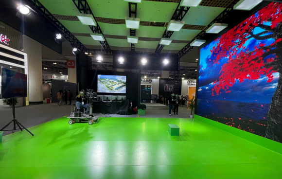 在中影C3T09展位,前廳為采用洲明輕便租賃產(chǎn)品——UGN系列和中影全數(shù)字化虛擬動捕交互系統(tǒng)——幻境共同打造的虛擬影棚。結(jié)合虛擬拍攝技術(shù)設備、VR系統(tǒng)和六軸機械臂等技術(shù)手段,LED顯示屏作為虛擬內(nèi)容背景墻,將真實演員置身于虛擬場景中,與虛擬場景、虛擬道具進行現(xiàn)場互動。