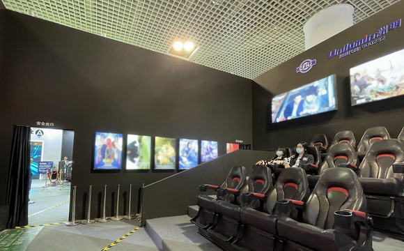 展位后部則是采用洲明紅點精品小間距——UHPⅡ顯示大屏、中影4D座椅系統(tǒng)共同打造的迷你電影放映廳。大屏完整還原了影片的真實細節(jié)和色彩,4D座椅系統(tǒng)則結(jié)合影片內(nèi)容打造晃動、閃電颶風等特效場景,讓觀影人員身臨其境感受大片的震撼與刺激。
