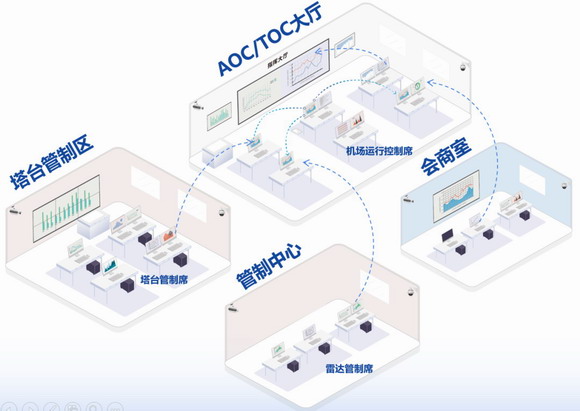 (2) 管制席位區空間有限,如何在有限的空間統一調控雷達系統、飛行計劃、航行情報、氣象觀測、系統監控等眾多系統,同時實現多個管制區域信息互聯互通成為了一個難題;