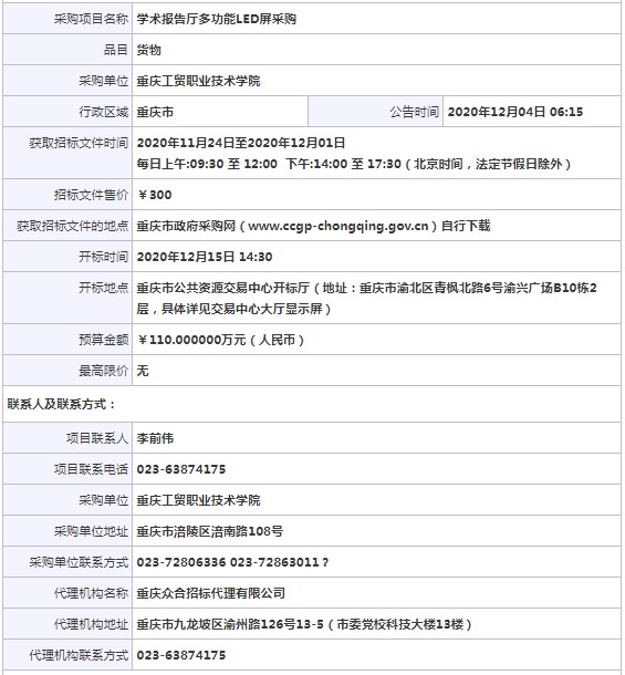 采購項(xiàng)目名稱: 學(xué)術(shù)報(bào)告廳多功能LED屏采購