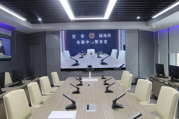 近日,洲明為深圳市寶安福海派出所國際會展中心警務室提供的136吋UTVIII智能會議一體機及智慧會議解決方案正式投入使用。日后,它將為寶安福海派出所國際會展中心警務室的警務信息展示、遠程會議、警務協同、日常接待及其他相關工作提供絕佳的顯示媒介,為維護國際會展中心正常運行及周邊轄區的社會治安提供有力支持。