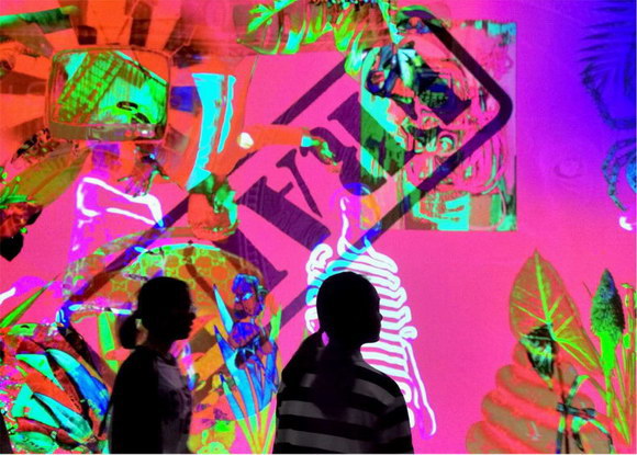 通常來講,為了達(dá)到沉浸效果,沉浸式藝術(shù)展采用的技術(shù)有3D、VR、融合投影、互動(dòng)投影等,利用人的感官體驗(yàn)和認(rèn)知體驗(yàn),營造氛圍讓參觀者參與互動(dòng)。其中視覺感官給人的影響最大最直接,在沉浸式展覽體驗(yàn)過程中隨處可見。