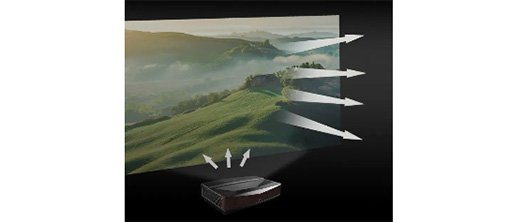 華錄激光電視采用漫反射成像:主機(jī)光線先投射到抗光幕上,再通過反射進(jìn)入人眼。相比采用直射光的液晶屏而言,采用漫反射原理的華錄激光電視顯示畫面更柔和, 孩子的眼睛不會(huì)直視光源,長時(shí)間觀看也不容易視覺疲勞,更好地呵護(hù)他們的雙眼。