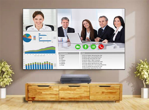 華錄激光電視支持手機(jī)、ipad無線投屏,可以清晰顯示手機(jī)、ipad辦公軟件、視頻軟件信息內(nèi)容(例如:釘釘、WPS),將移動(dòng)終端中的會(huì)議討論資料(PPT、Word、Excel)、視頻內(nèi)容投屏顯示,傳輸信號穩(wěn)定,方便公司主管、員工、客戶在視頻會(huì)議中的溝通交流、及時(shí)反饋工作信息,保證工作進(jìn)度。