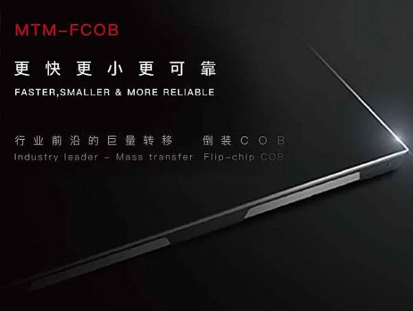 而另一系列MTM-FCOB,一經發布便被評為“百優創新產品”,行業內首個實現巨量轉移全倒裝COB,更快更小更可靠,是當前行業“微顯示”的代表。AET自主研發的倒裝芯片技術解決了正裝COB難題,最小可生產 0.1mm的微間距產品。MTM-FCOB具有超強防護性能,轉移良率提升到99.9999 %,在線點測修復后良率100%。