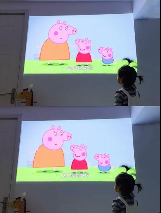 它可以投射出80至100英寸大畫面,且內置豐富動畫資源,《小豬佩奇》《開心娜娜》《猜猜我有多愛你》等動畫片應有盡有,對孩子來說,簡直就是一座流連忘返的寶庫。