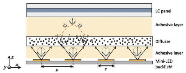 ▲Mini LED背光原理示意,與傳統LED背光相似。