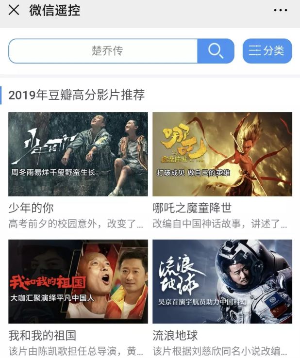 相當于一個“輕量級”的無屏助手,擁有遙控器和點播影視劇兩個功能。