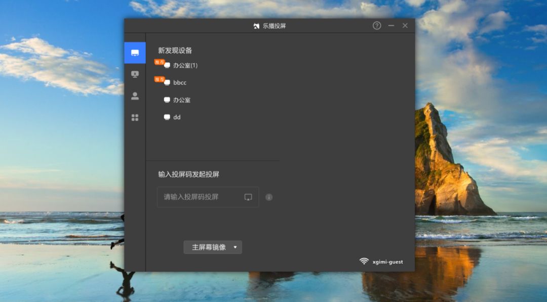 打開極米中的樂播投屏,在電腦端發(fā)現(xiàn)設(shè)備列表中點擊相應(yīng)設(shè)備或輸入投影中的投屏碼即可。
